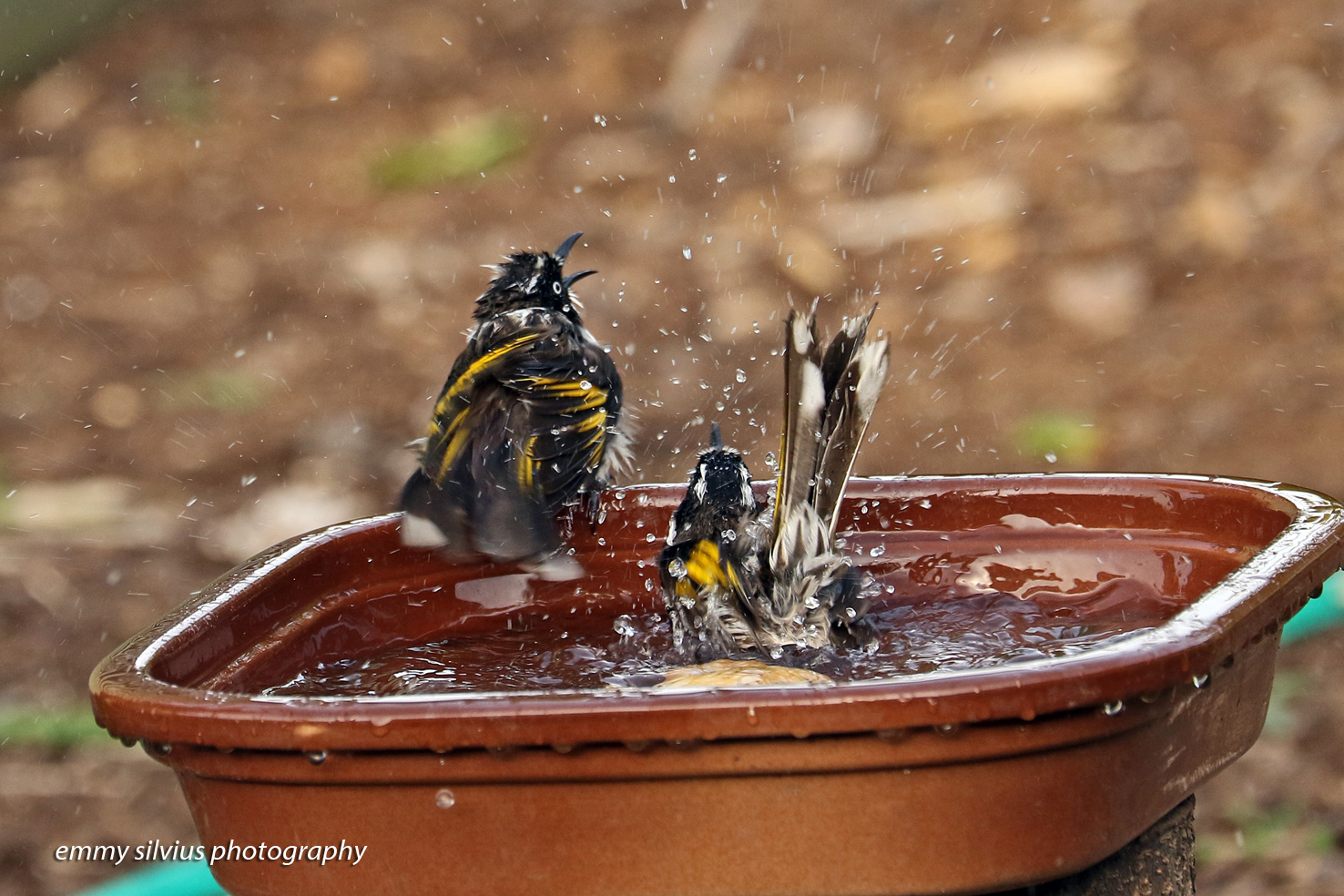 New Holland Honeyeater – bathing (0064)