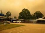 From 8 to 10 February 2014 I assisted at the Emergency Relief Centre in Cann River (VIC) where people sought refuge after the Princess Highway was closed off due to heavy smoke caused by fires in the region. On Sunday 9 February I took photos showing the emerging smoke which gradually changed the colour of the sky – by mid afternoon day had already turned into night.
